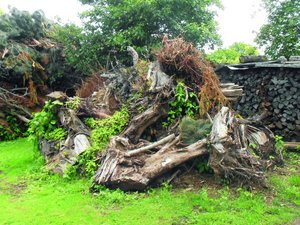 Ein Totholzhaufen schafft Verstecke und Nistplätze für viele Tiere. Spinnen, Käfer, Ohrwürmer und Wildbienen fühlen sich hier wohl, aber auch größere Tiere wie Erdkröten und Eidechsen schätzen diesen Lebensraum.