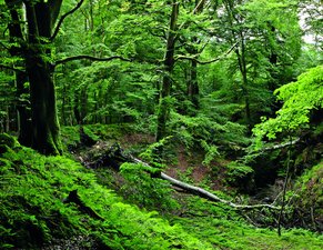 Totholz ist ein guter Kohlenstoffspeicher, denn bis ein Baum komplett zersetzt ist, dauert es viele Jahrzehnte. In dieser Zeit bleibt das CO2 im Totholz gebunden und wird mit fortschreitender Zersetzung teilweise im Boden gespeichert..